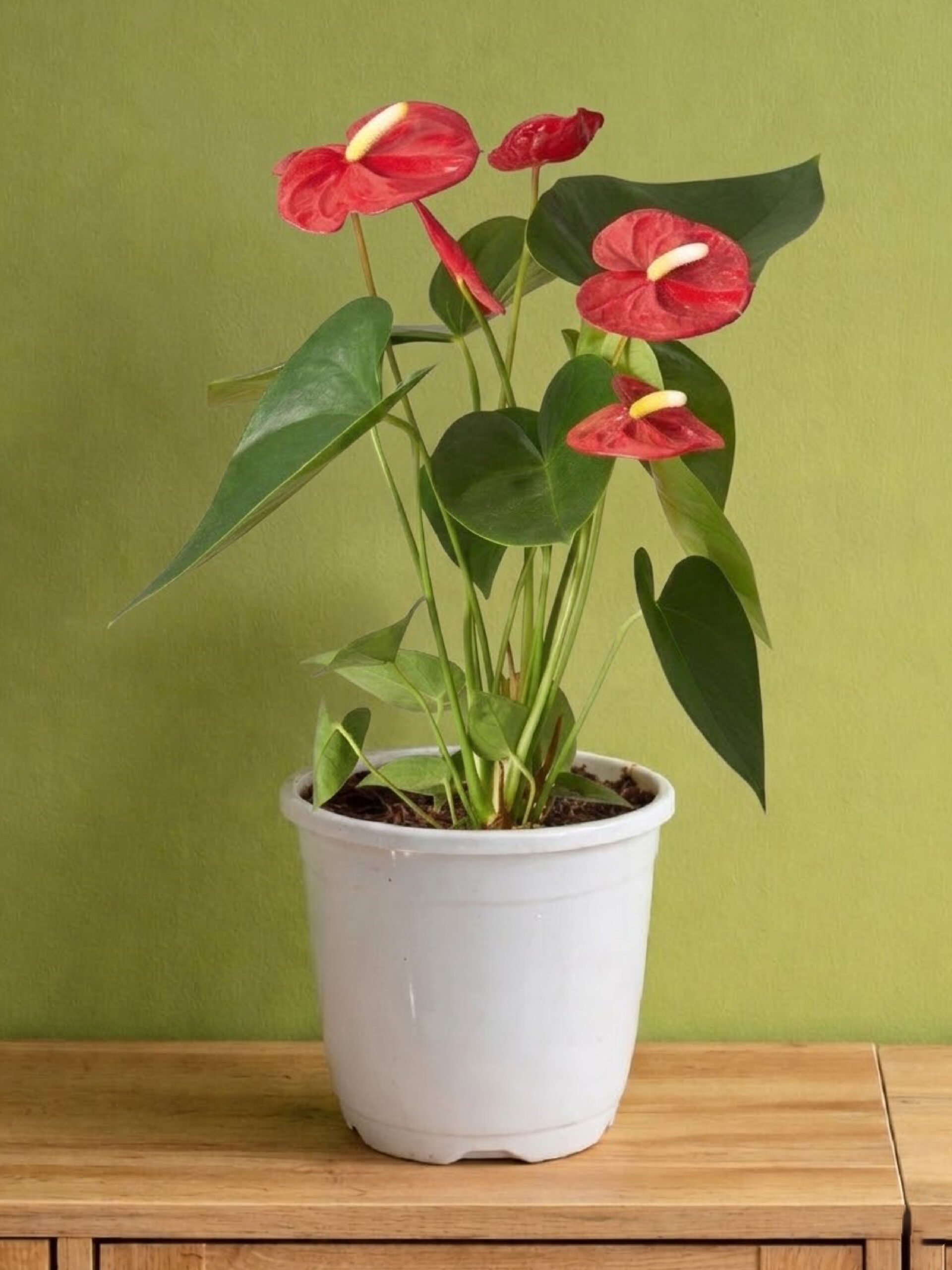 Ideal Light: Bright, indirect light is best. Too little light reduces flowering, while direct sunlight can scorch the leaves and spathes.